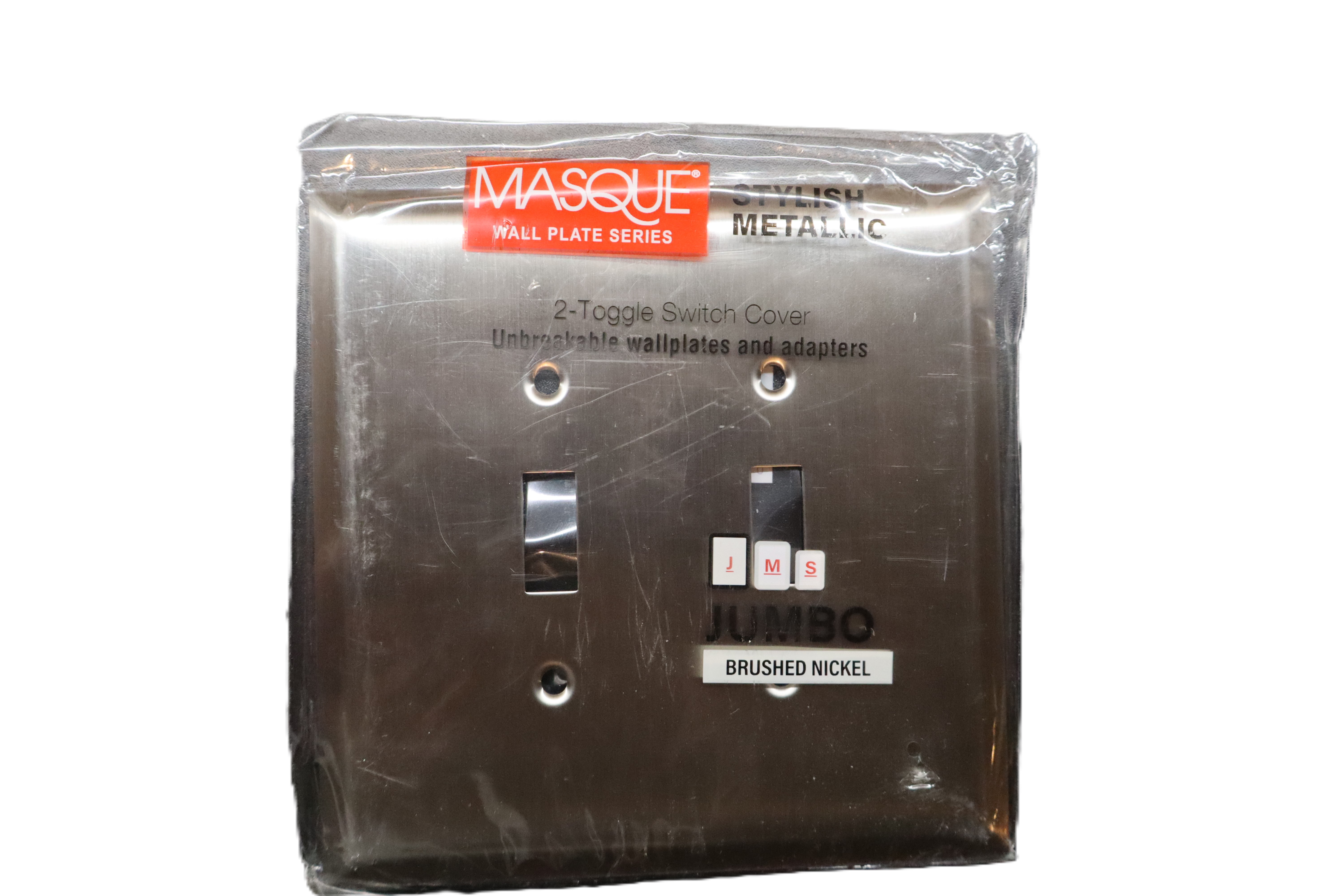 Masque Wall Plate Series 2-Toggle Switch Cover, Jumbo, Brushed Nickel, Model WJBN-TTX-10 Description