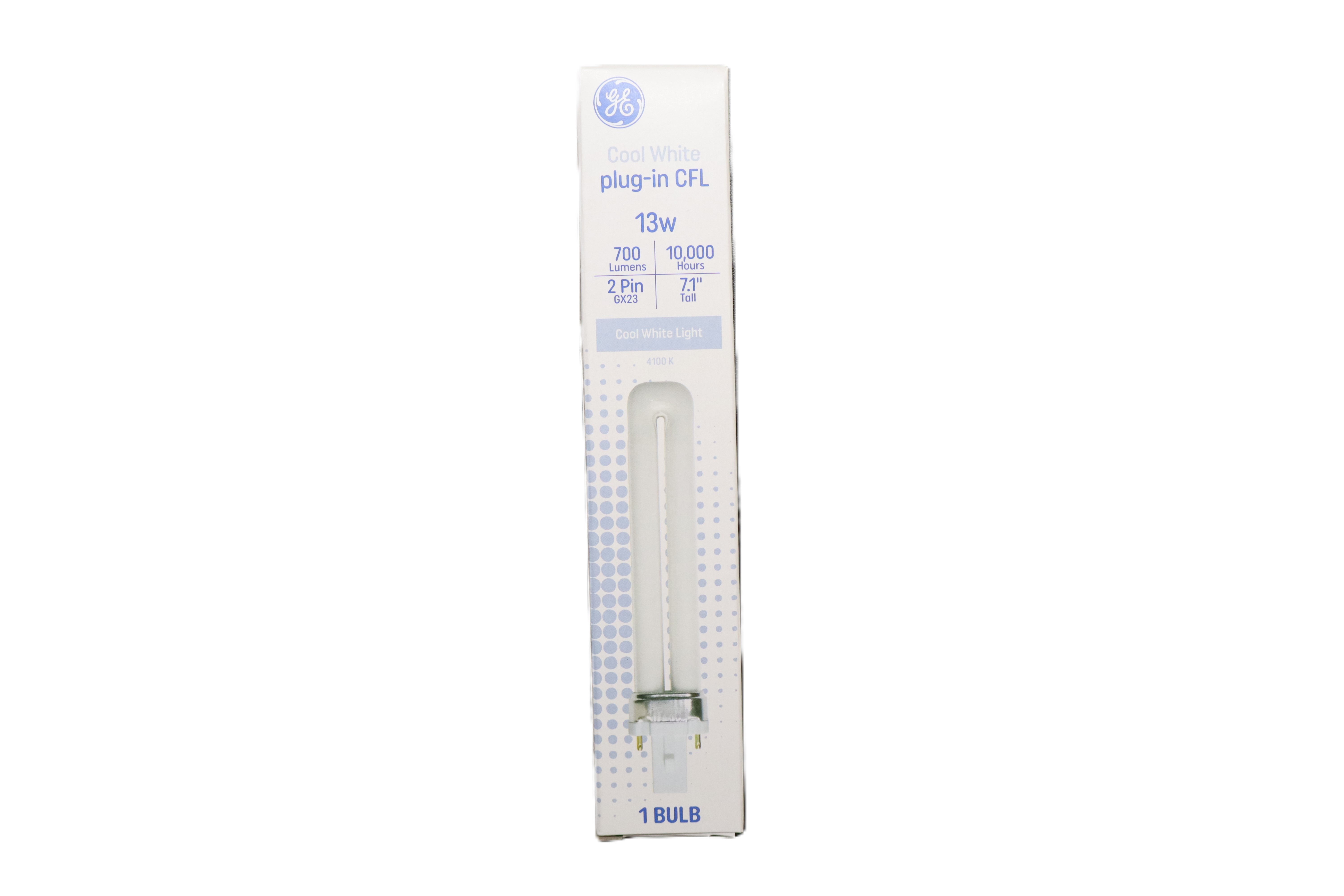 GE 13W Plug-In CFL Bulb, Cool White 4100K, GX23 2-Pin Base, 700 Lumens, 7.1 in., 1 Pack