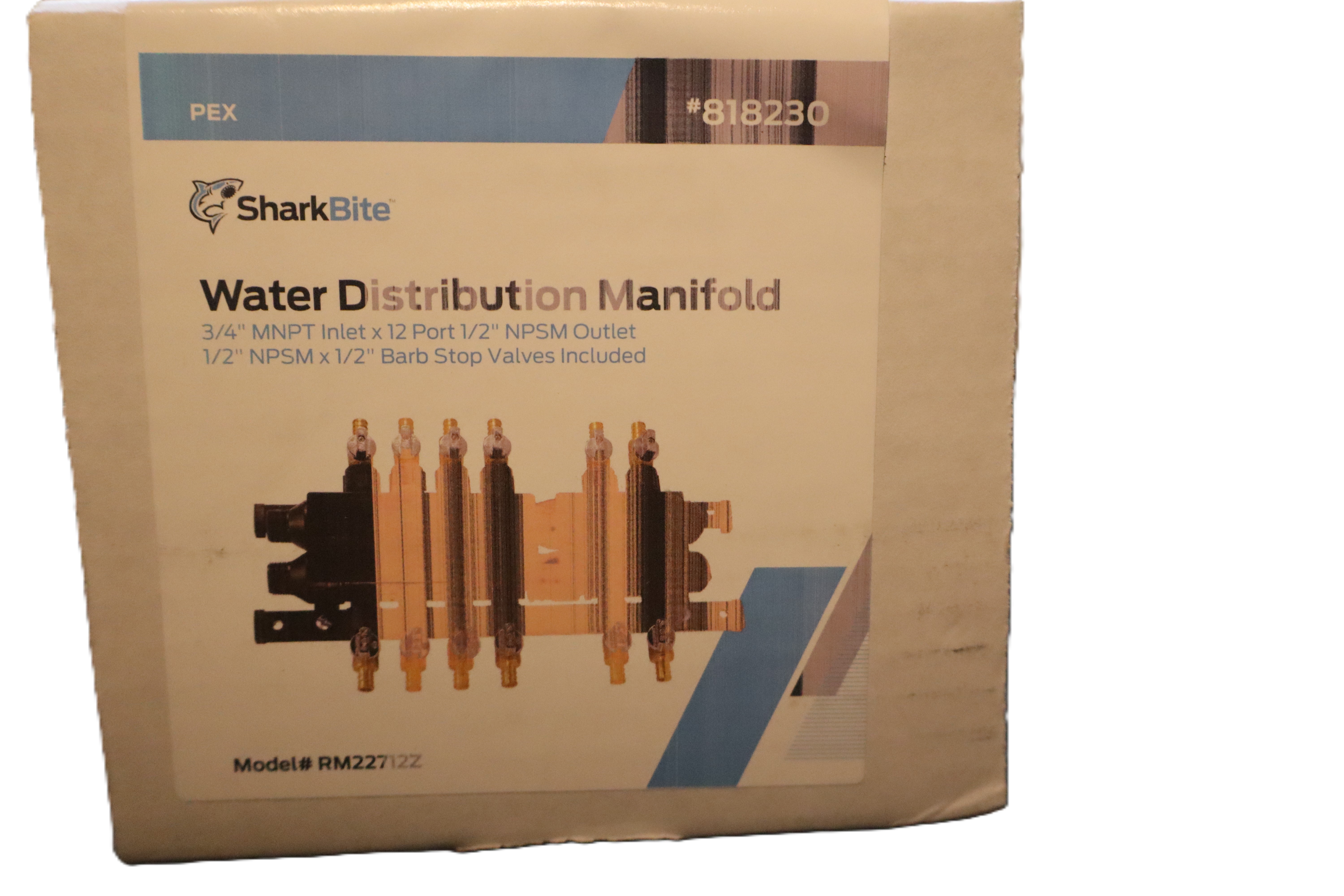 SharkBite RM22712Z PEX Water Distribution Manifold, 3/4 in. MNPT Inlet, 12-Port 1/2 in. NPSM Outlet, Valves Included