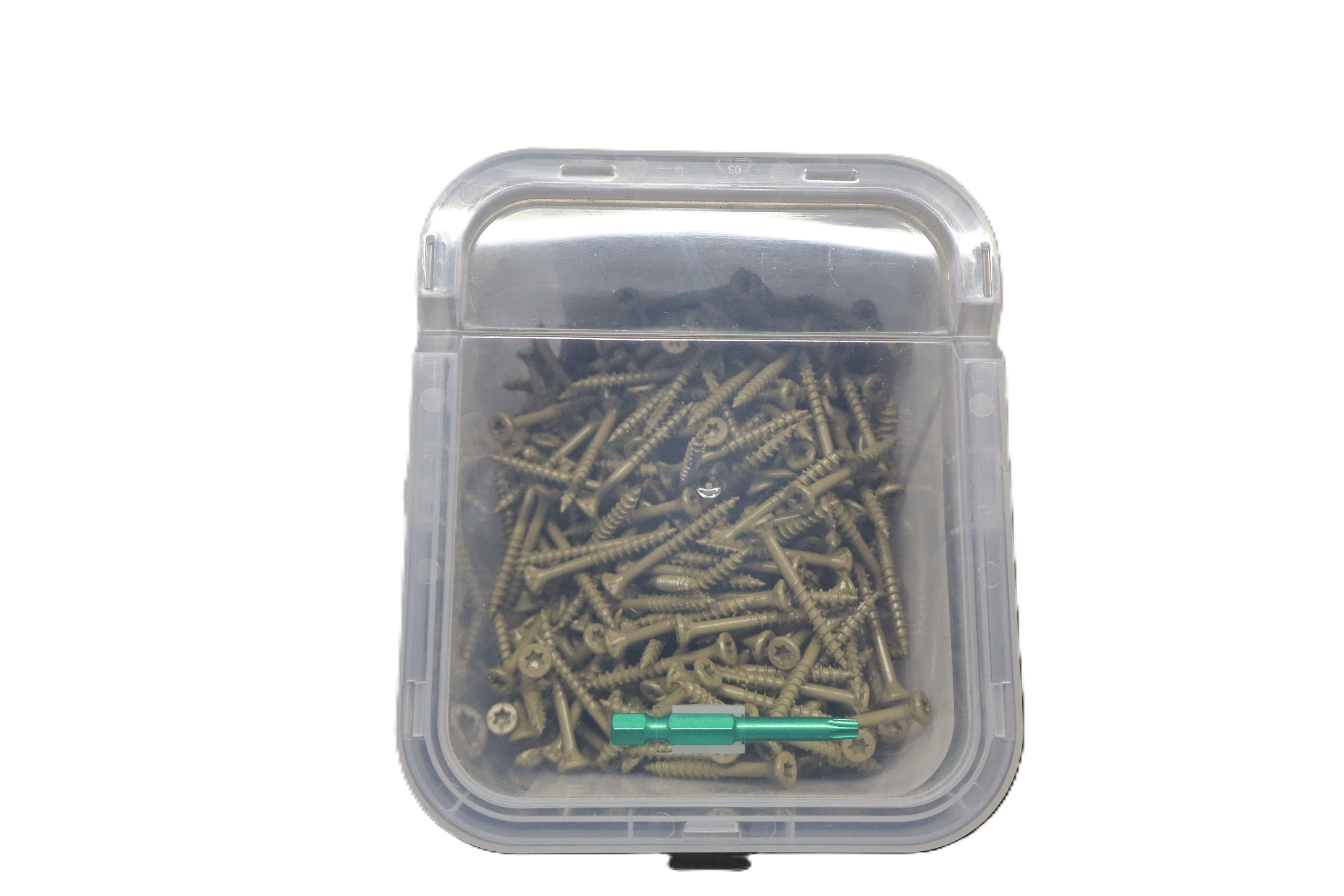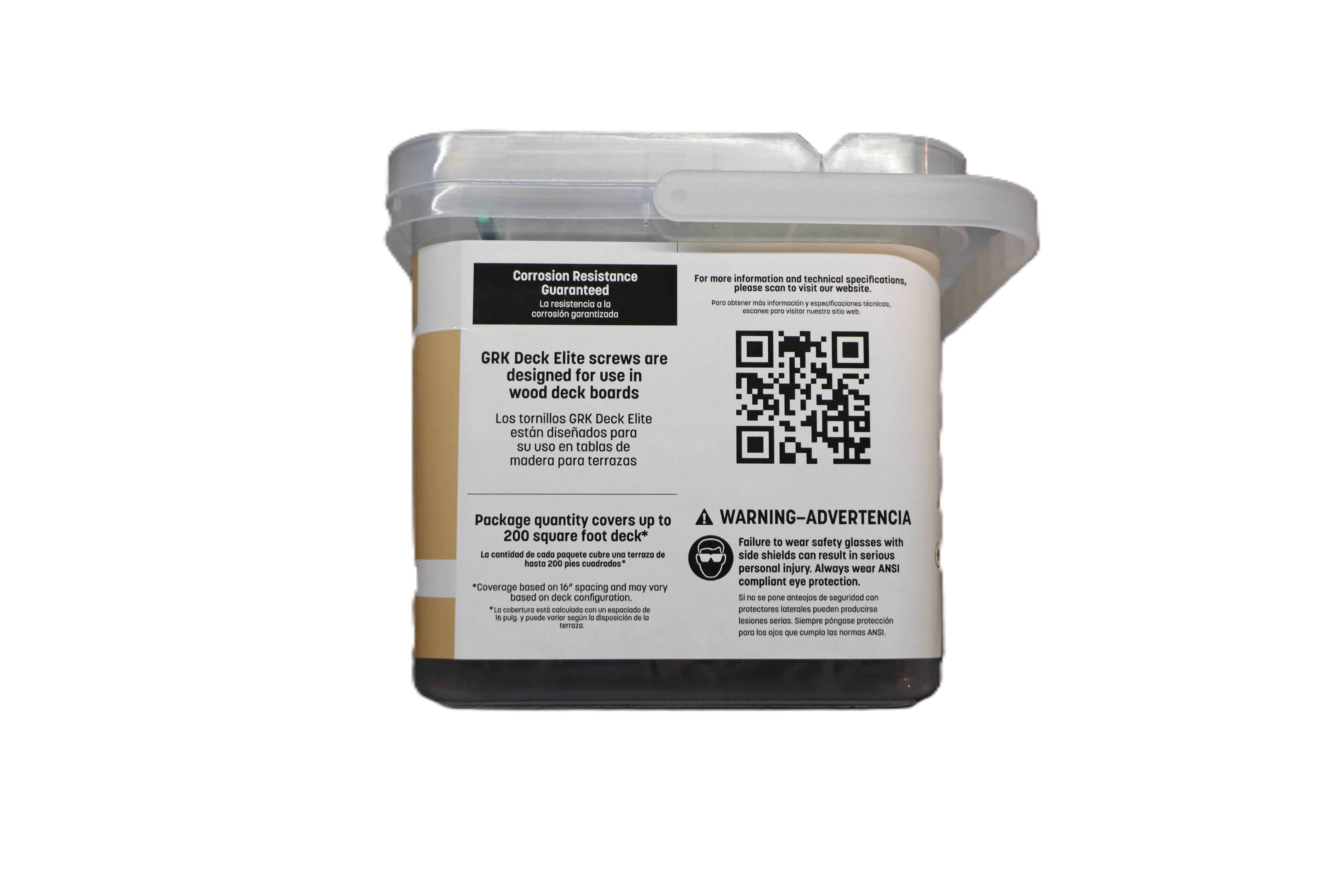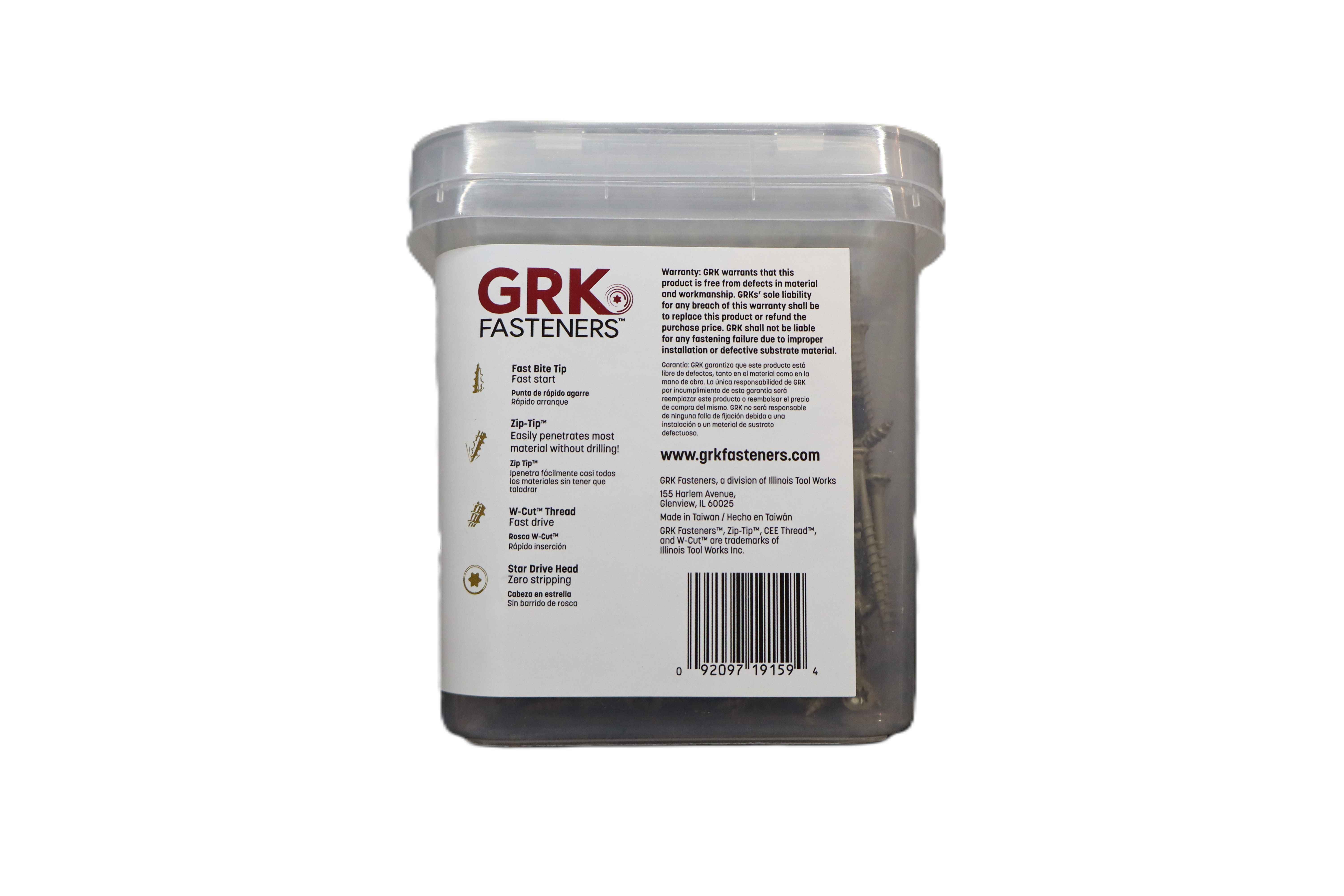 GRK Fasteners Deck Elite decking screws are designed for strong, reliable deck construction and other outdoor wood projects. These #9 x 1-5/8 inch screws feature a fast bite tip for quick starts, a Zip-Tip design to help eliminate pre-drilling, and a star drive to reduce stripping during installation. Approved for use with treated lumber and finished with an indoor/outdoor coating, they are built for durability in demanding applications. This tub includes 540 screws and a T-25 bit for added convenience. Key Specs Brand: GRK Fasteners Product Line: Deck Elite Product Type: Decking screws Screw Size: #9 Length: 1-5/8 in Quantity: 540 count Drive Type: Star drive Tip Type: Fast bite tip / Zip-Tip Pre-Drilling: No pre-drilling required Material Compatibility: Treated lumber approved Coating: Indoor/outdoor coating Included Accessory: T-25 bit Model Number: 19159