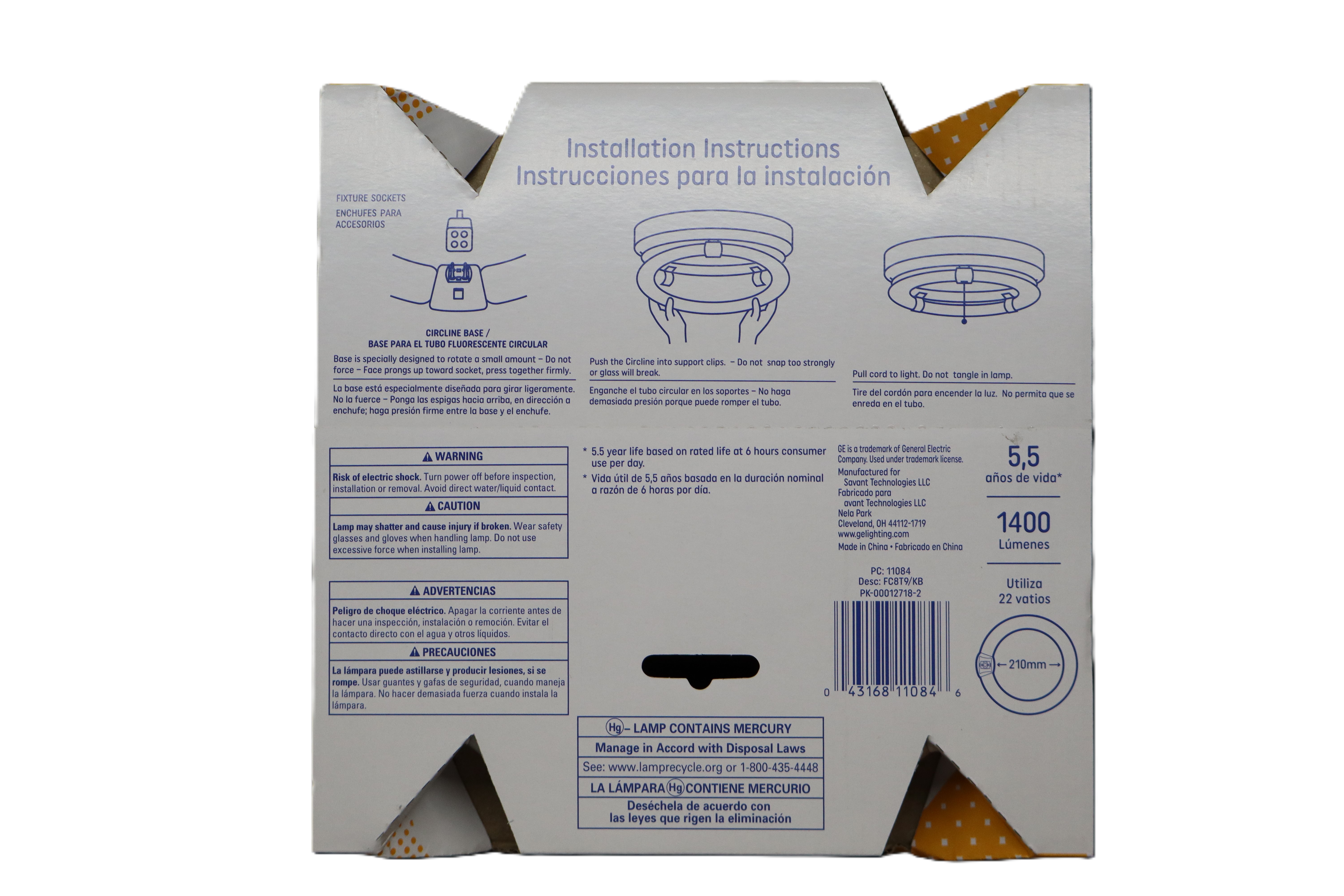 Brighten kitchens, bathrooms, and other utility spaces with this GE 8-inch FC8 T9 Circline fluorescent bulb. It delivers a warm white 3000K light that creates a comfortable, inviting look while providing strong illumination at 1400 lumens. Designed for compatible circline fixtures, this 22-watt bulb is ideal for everyday residential use and offers an estimated 5.5-year life based on 6 hours of use per day. Specifications Brand: GE Product Type: Circline fluorescent bulb Bulb Shape: FC8 T9 Circline Diameter: 8 in. Light Color: Warm White Color Temperature: 3000K Brightness: 1400 lumens Wattage: 22 watts Application: Kitchen & bath Estimated Life: 5.5 years Quantity: 1 bulb Base/Socket: 4-pin circline connector Use Location: Indoor Key Features Warm, inviting light for kitchen and bath spaces Compact 8-inch circline design Provides 1400 lumens of brightness Energy-saving 22-watt operation Long-lasting rated life